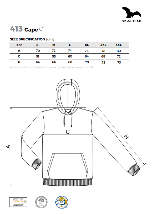 MALFINI CAPE 413 męska bluza z kapturem 320 g
