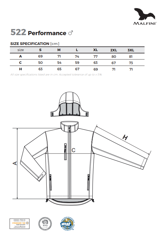 - Materiał: dzianina wielowarstwowa Softshell o składzie 94% poliester, 6% elastan