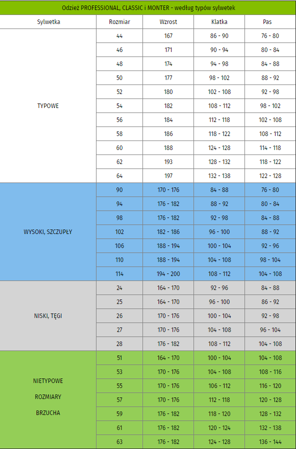 - spodnie dla pracowników magazynów, produkcji